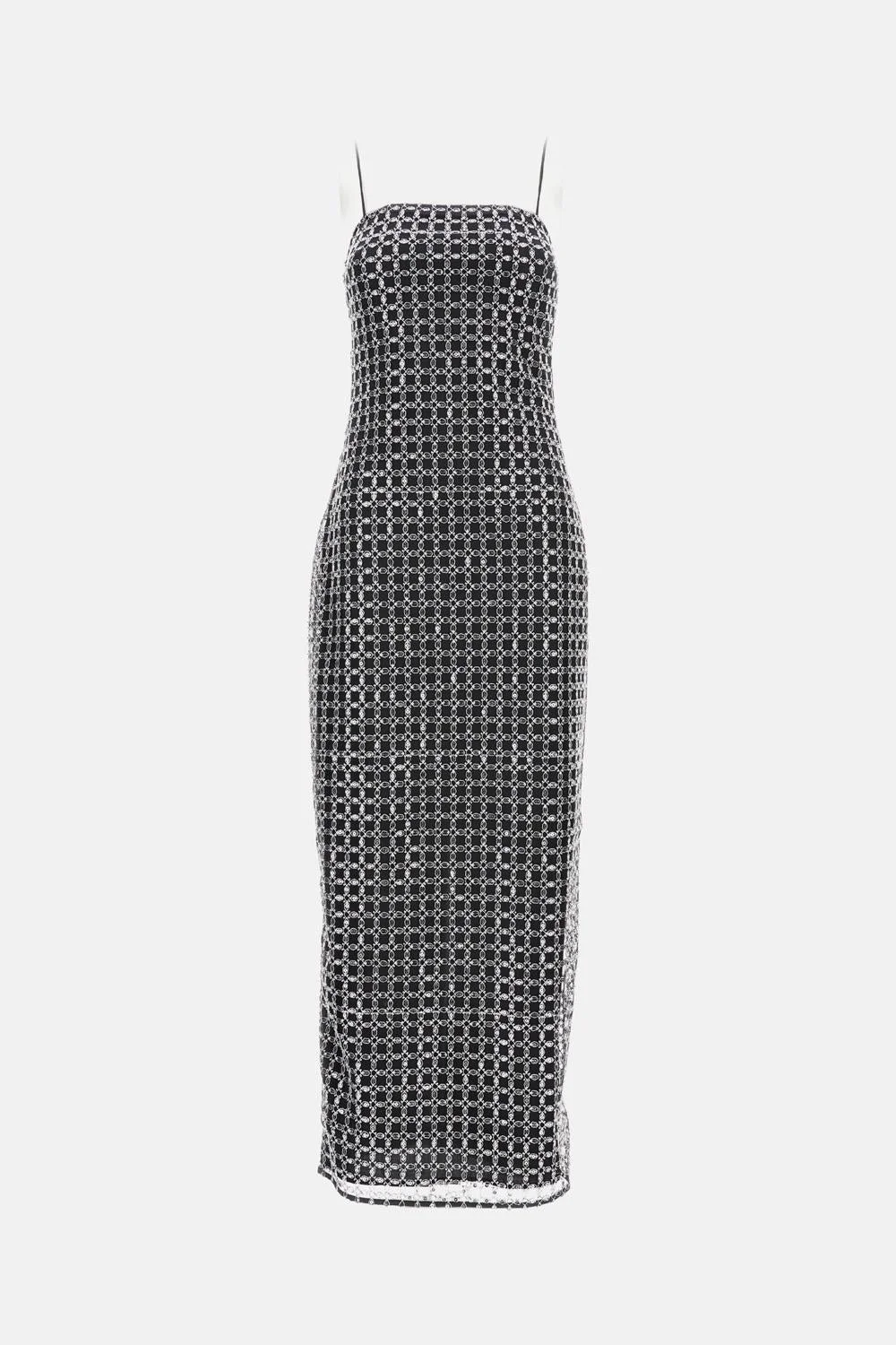 Long dress with symmetrical sequin embroidery. Zip closure Fitted bandeau silhouette Two thin straps Details and Care Color: Nero Composition: 100% PL Made in: Cina Sku: 115451100100