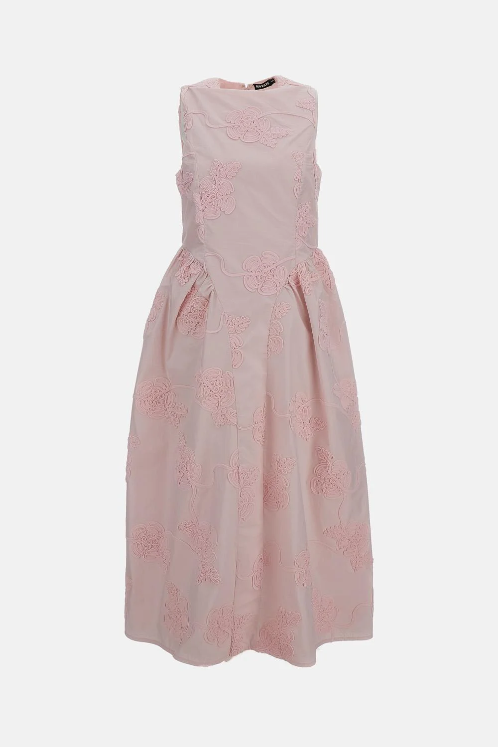 Pink cotton midi dress All-over embroidered floral pattern Fitted bodice Voluminous skirt with soft pleats Hidden zipper closure at the back Inner lining for added comfort Round neckline Details and Care Color: Rosa Composition: 100% CO Made in: India Sku: 11510618091809