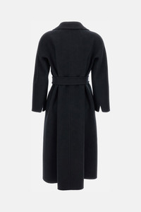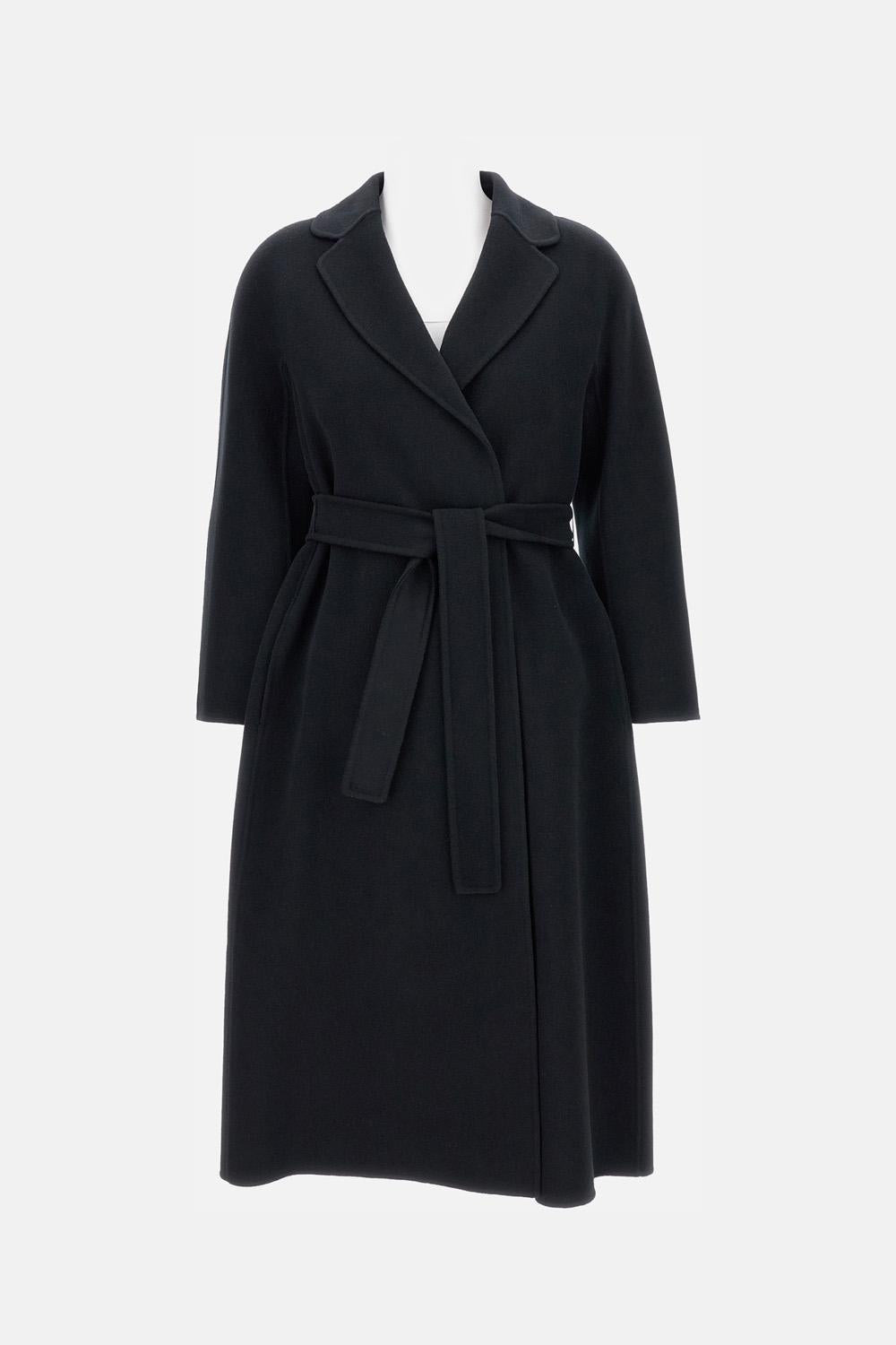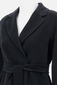 Esturia wool coat with classic lapel and waist belt, side pockets, black color Care and details Color: Black Composition: 100% WO Made in: Cina Code: 2529016081600013
