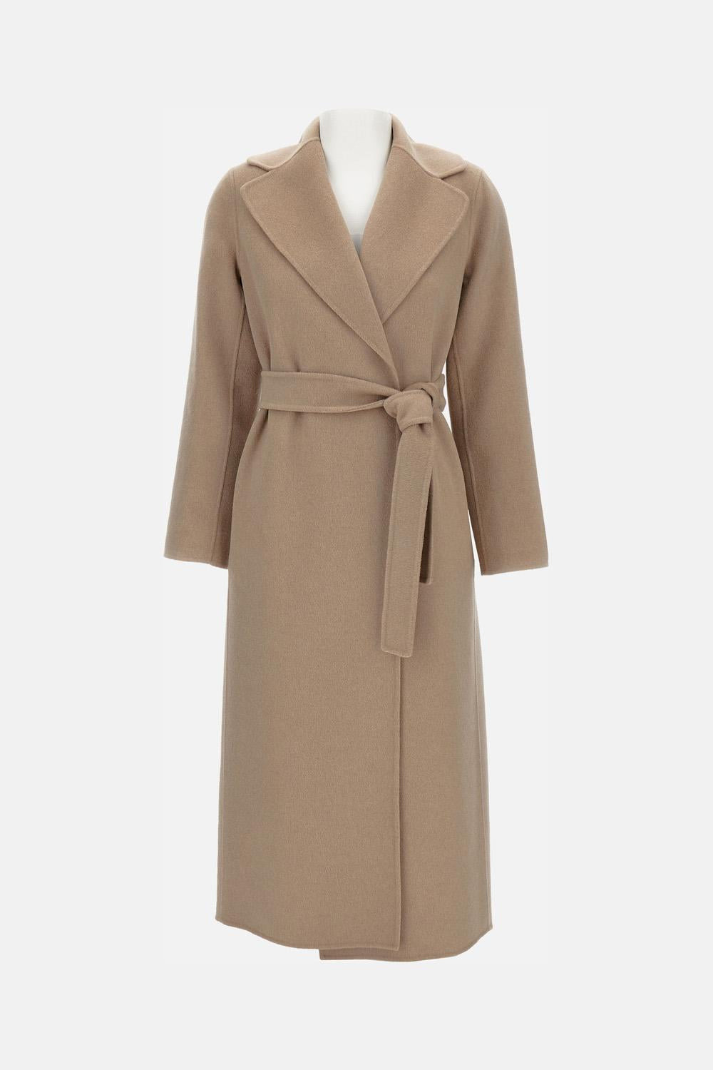 Paola coat in wool and cashmere with V-neck and lapels, closure with removable and adjustable belt at the waist, side pockets, long sleeves with slits on the cuffs, beige color. Details and Care Color: Beige Composition: 70% VIRGIN WOOL 30% WS Made in: Cina Sku: 2529016083600002