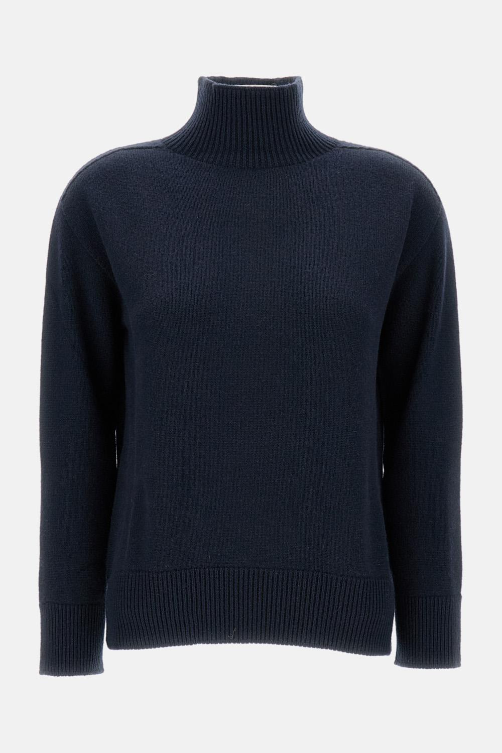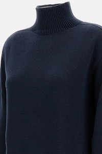 100% cashmere sweater, knitted design with a high neck and long sleeves, side slits, ribbed hem and cuffs. Made in Italy, blue color. Details and Care Color: Blu Composition: 100% WS Made in: Italia Sku: 2529366153600006