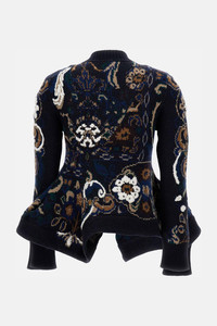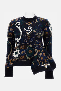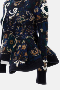 Jacquard wool sweater with floral motif, structured ruffle detail on the bottom. Regular fit, blue color Care and details Color: Blue Composition: 100% WO Made in: Cina Code: 2507984201