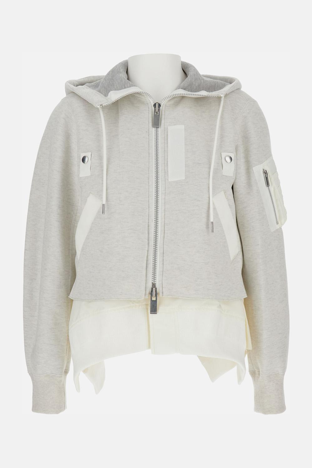 Cotton blend sweatshirt with hood and large pockets. Oversized model, front zip closure and adjustable drawstring on hood. Underlying part in Nylon Details and Care Color: Bianco Composition: 62% CO 38% PE Made in: Japan Sku: 2508171060