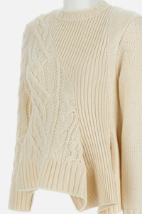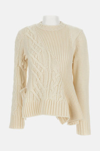 Pullover crafted in a wool blend with cable and ribbed patterns. Ivory color Details and Care Color: Bianco Composition: 80% WO 20% NY Made in: Cina Sku: 2508054151