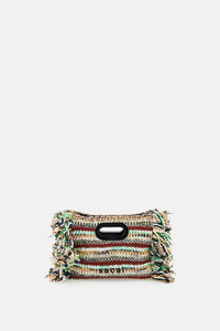 Iconic shopper in a multicolor knit version with fringes The logo is woven on both the front and back The leather shoulder strap is removable Single large compartment inside without closure. Features oval metal handles for carrying by hand. Details and Care Color: Multicolore Composition: 53% CO 44% PL 3% AC Made in: Italia Sku: S16401664 Size and Fit Lunghezza: 27 cm Larghezza: 9,5 cm Altezza: 20,5 cm