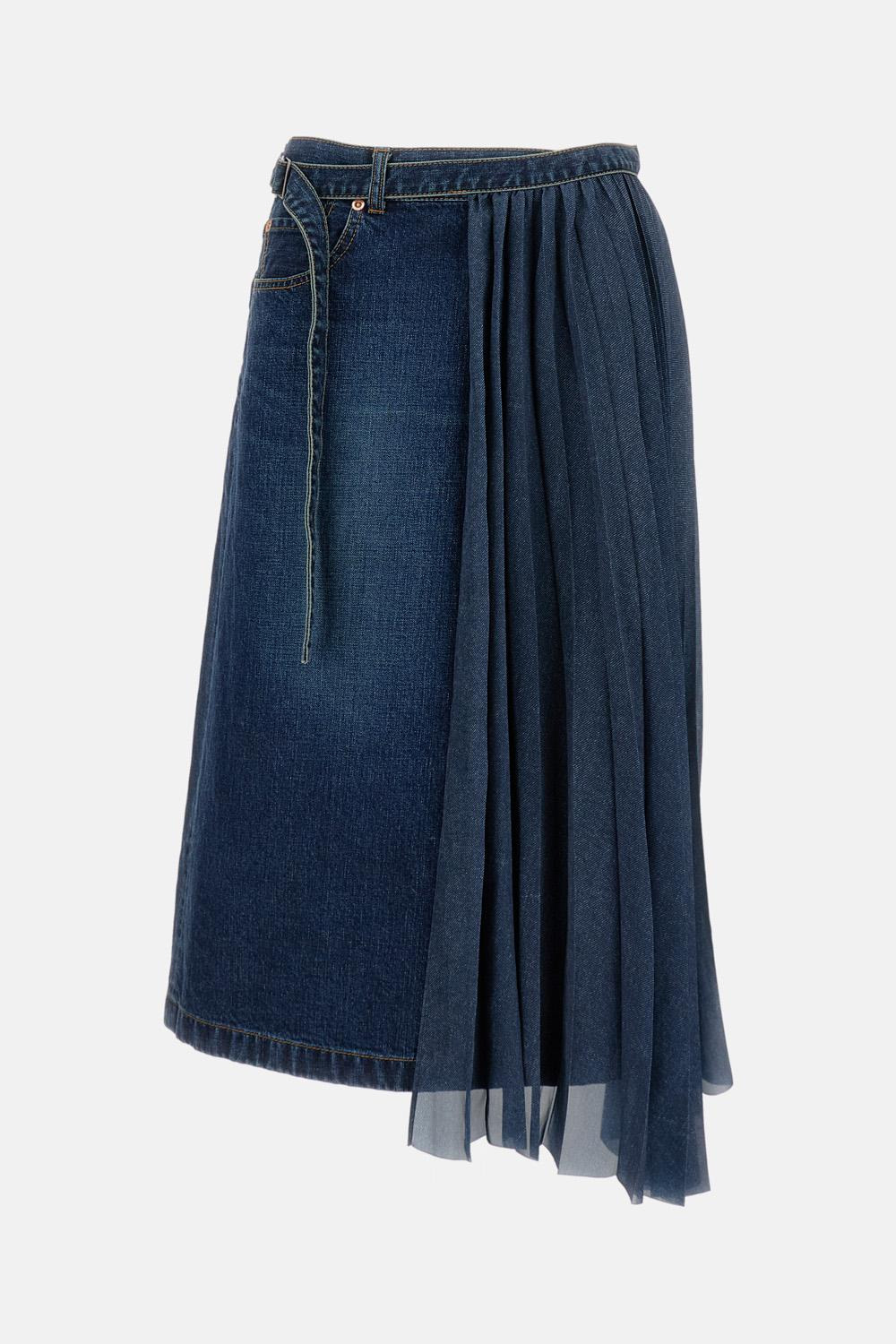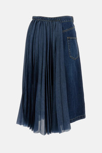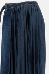 Long cotton skirt with fan-pleat detail on the side. A side pocket with a small pocket. Adjustable waist belt with buckle and belt loops. Denim blue color Details and Care Color: Blu Composition: 100% CO Made in: JAPAN Sku: 2508196401