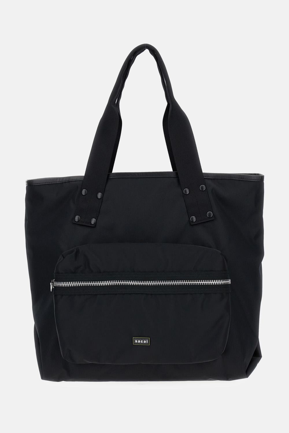Tote bag 2 handles with small pocket on the front with logo and metal zip closure. Black color Care and details Color: Black Composition: 100% PL Made in: Giappone Code: 2501020S001