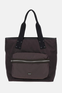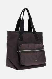 Tote bag 2 handles with small pocket on the front with logo and metal zip closure. Brown color Care and details Color: Brown Composition: 100% PL Made in: Giappone Code: 2501020S601