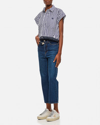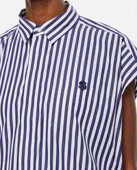 Striped cotton blend shirt Sleeveless Cropped cut Boxy fit Chest pocket with embroidered logo Button closure. Details and Care Color: Bianco Composition: 65% PL 35% CO Made in: Giappone Sku: SCW340222