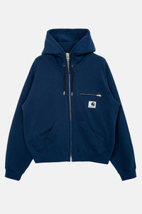 Hooded sweatshirt from the Sacai x Carhartt Wip collaboration. Ribbed cuffs and hem. Zip fastening. Double front pockets and a small zipped pocket. Hood with drawstring. Logo patch on the chest. Blue colour. Details and Care Color: Blue Composition: 100% cotton Made in: Giappone Sku: 2601091S401