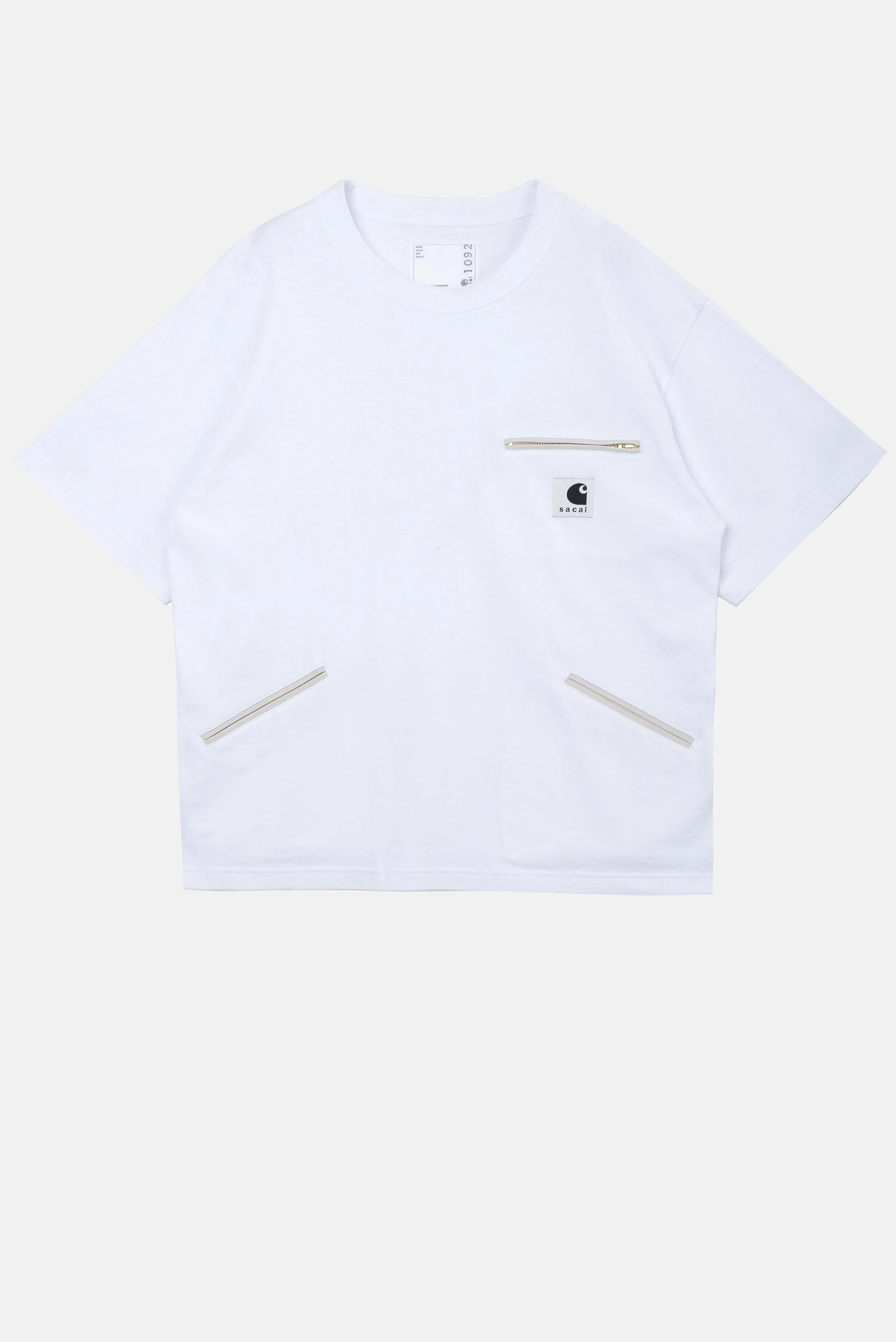 Short-sleeved shirt from the Sacai x Carhartt WIP collaboration. Topstitching on the sleeves. Zipped pockets at the waist and on the chest. Logo patch on the chest. White color Details and Care Color: White Composition: 100% cotton Made in: Giappone Sku: 2601092S101