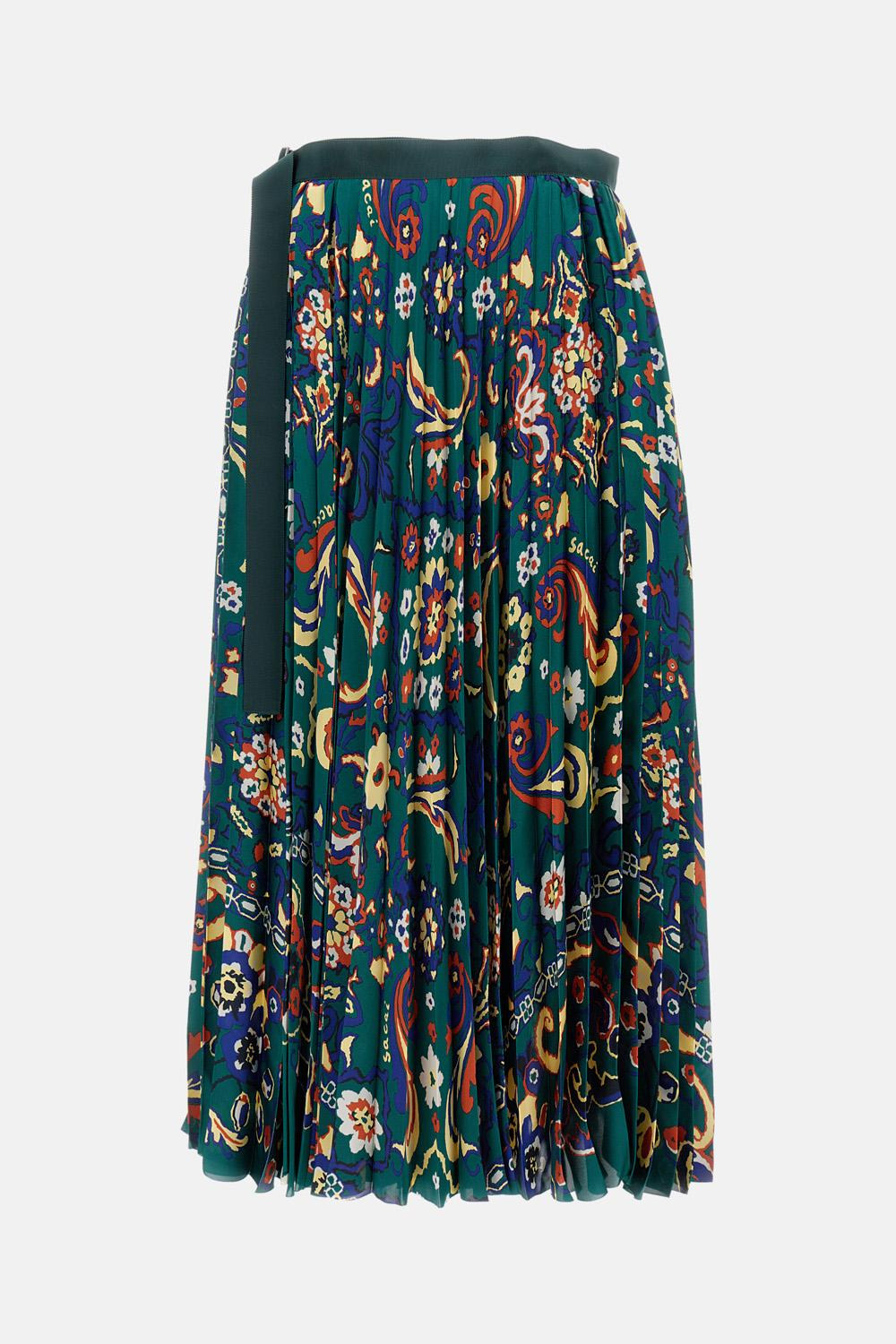 Soft long skirt, with pleats and floral print, Adjustable waist belt, green color Care and details Color: Green Composition: 100% PL Made in: Giappone Code: 2507982551