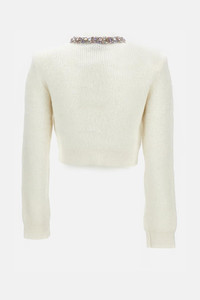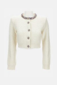 Long-sleeve crewneck cardigan with buttons. Cream color Details and Care Color: Bianco Composition: 37%PES 34%ALPACA HAIR 18%PA 10%WO 1%EA Made in: Cina Sku: AW25135CCCREAM