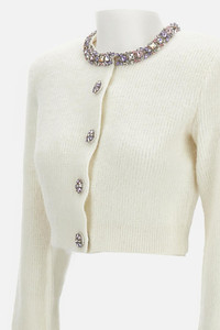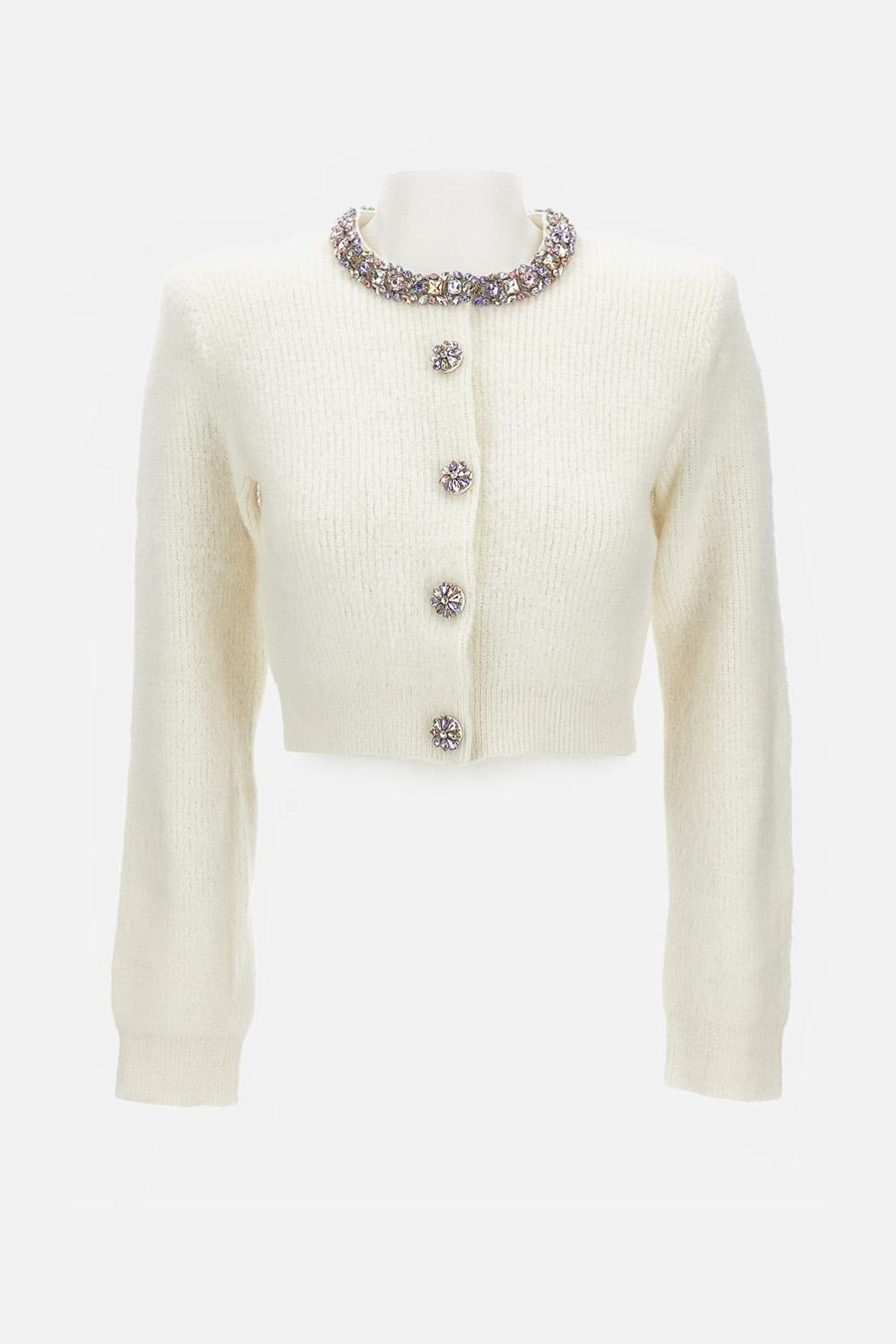 Cream Embellished Trim Cardigan