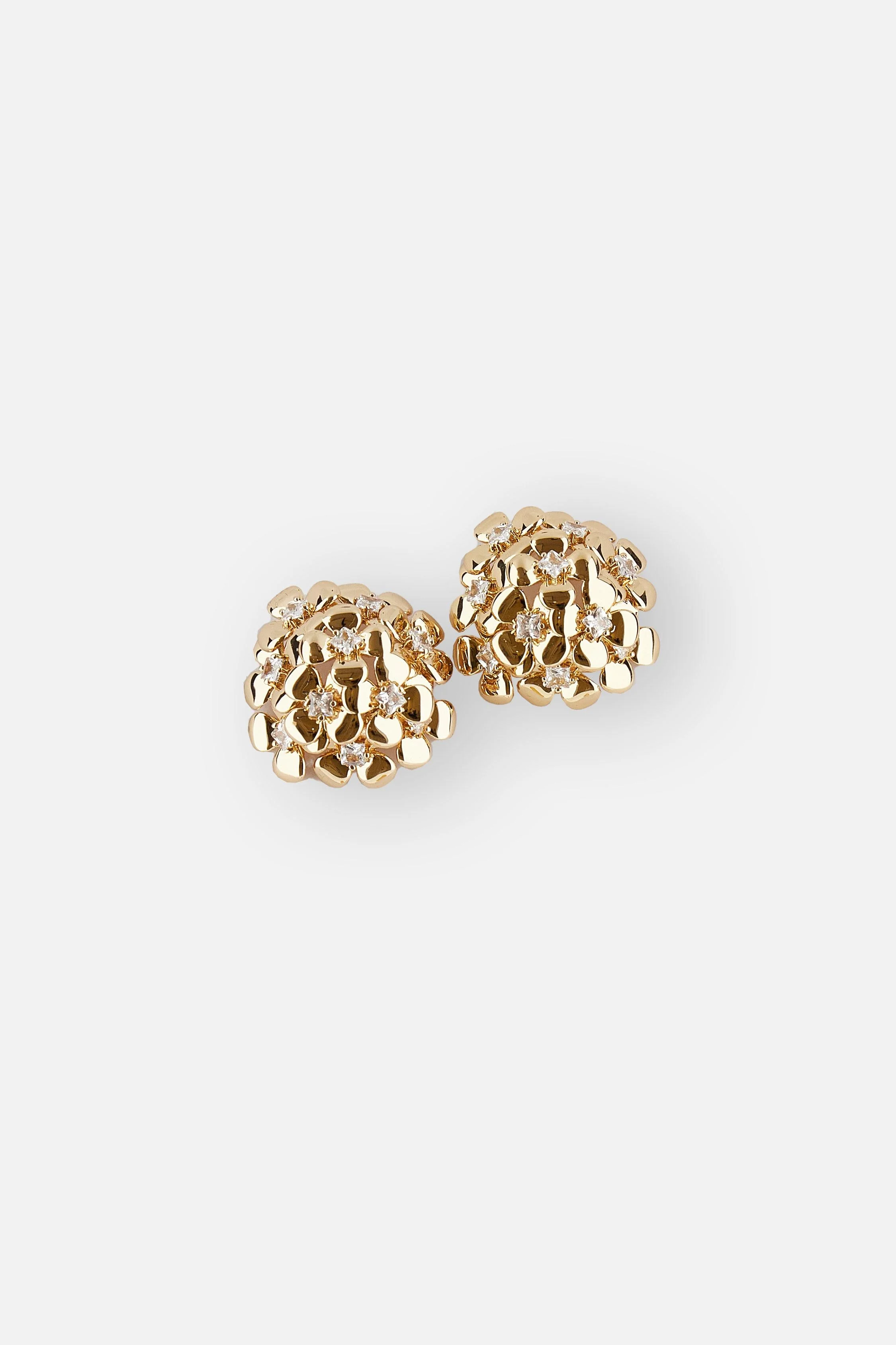 Cluster design earrings with floral details embellished with crystals, crafted in gold-tone metal. Post back closure. Details and Care Color: Oro Composition: HYPOALLERGENIC PLATED BRASS+5% ZIRCON2: 98%ZIRCON 2%STEEL NEEDLE Made in: Cina Sku: RS26615EGDGOLD
