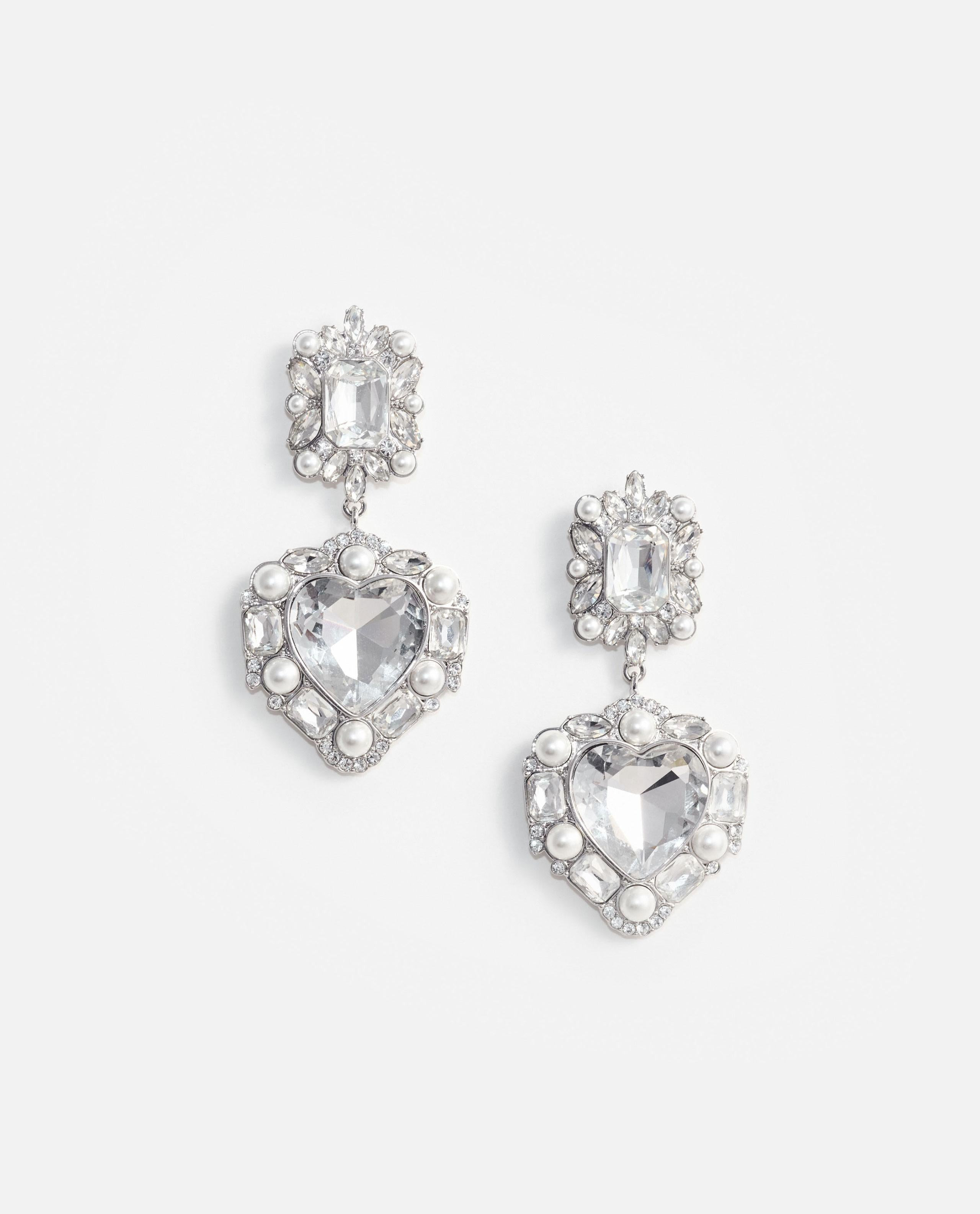 Heart drop earrings. Crystals and pearls. Color: silver Care and details Color: Silver Composition: Brass, Ziorcon, Glass Stone Rhinestones Made in: Cina Code: PF25600ESLSILVER