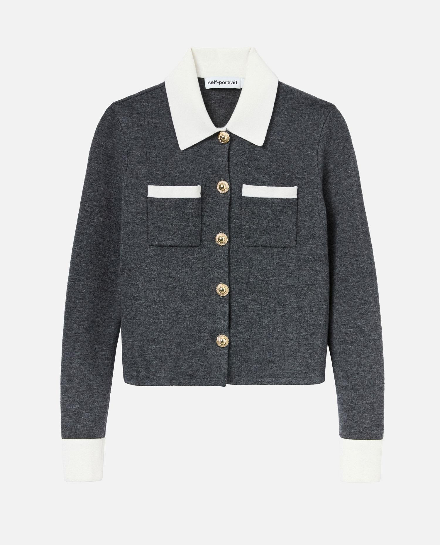 Cardigan with collar. Front closure with gold buttons. Color: gray Care and details Color: Grey Composition: 83% Wool 9% Polyamide 7% Cashmere 1% Elastane Made in: Cina Code: PF25048CGRGREY