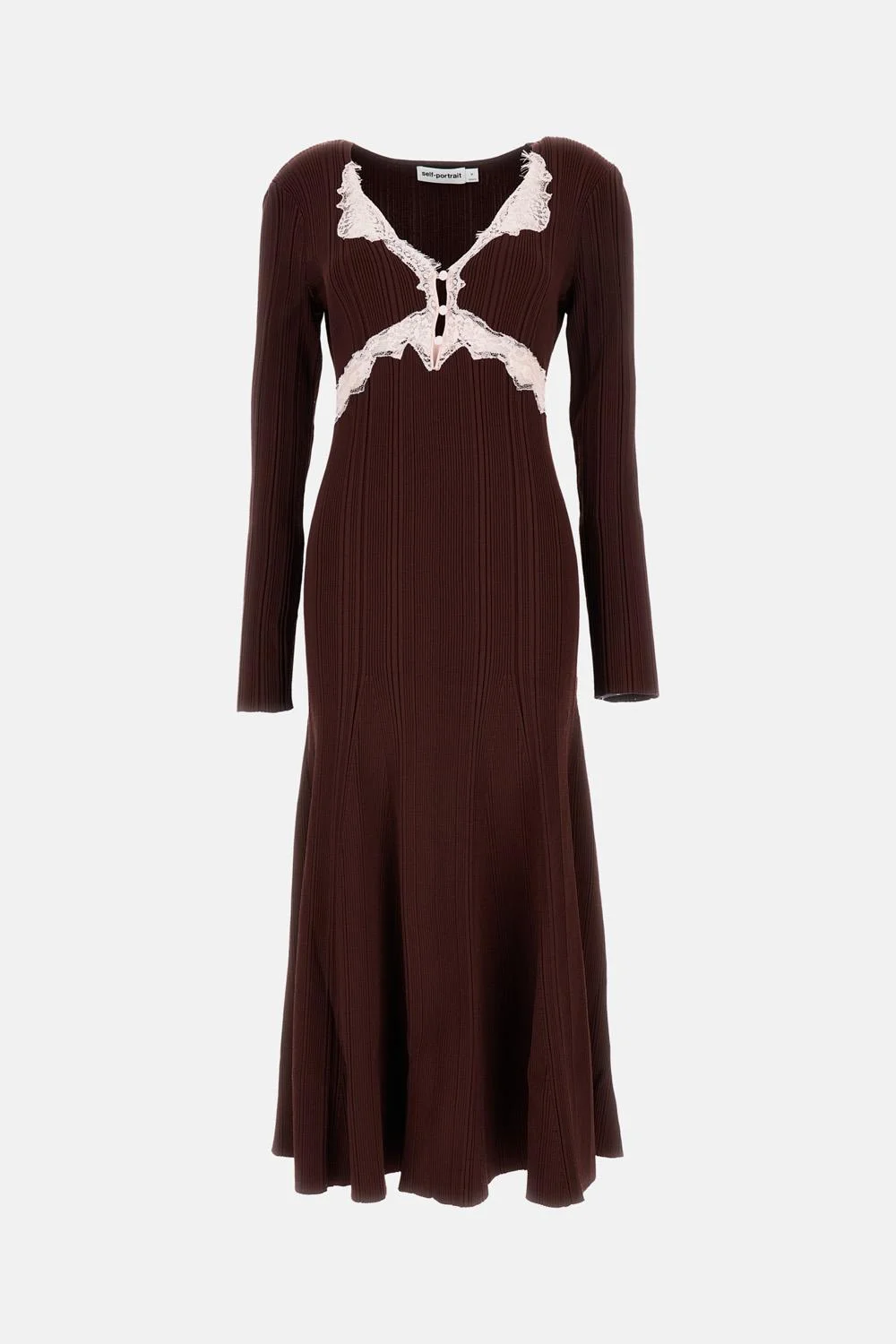 Ribbed knit dress Lace contrast detail on the neckline Flared silhouette Long sleeve Details and Care Color: Marrone Composition: 50%VI 32%PES 16%PA 2%EA Made in: Cina Sku: RS26176MBRBROWN