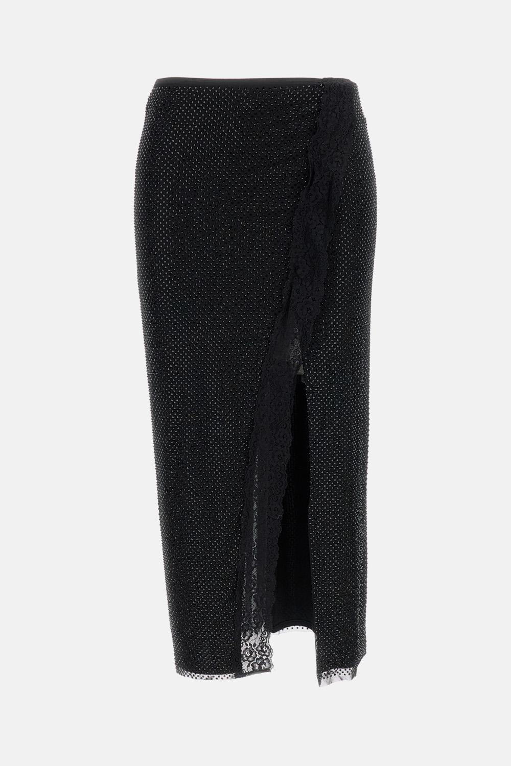 Black mini dress in crepe, with sparkling crystal trims on the neckline and edges. Fitted line and feminine silhouette, perfect for evening events and special occasions. Fluid and comfortable fabric with refined details that enhance the look. Details and Care Color: Nero Composition: 100%PES Made in: Cina Sku: SC25019SBBLACK