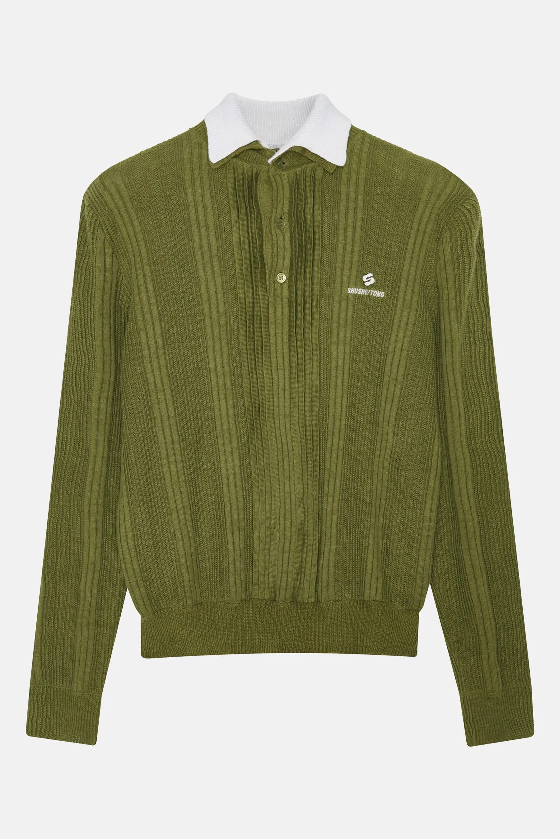 Pullover sweater with a straight, streamlined silhouette and an understated design. Crafted in lightweight, breathable linen yarn with a fresh, natural texture. Contrasting collar, central front pleat, and long sleeves. Green. Details and Care Color: Verde Composition: 100% LINEN Made in: Cina Sku: FSDFTO19FLA236GN100