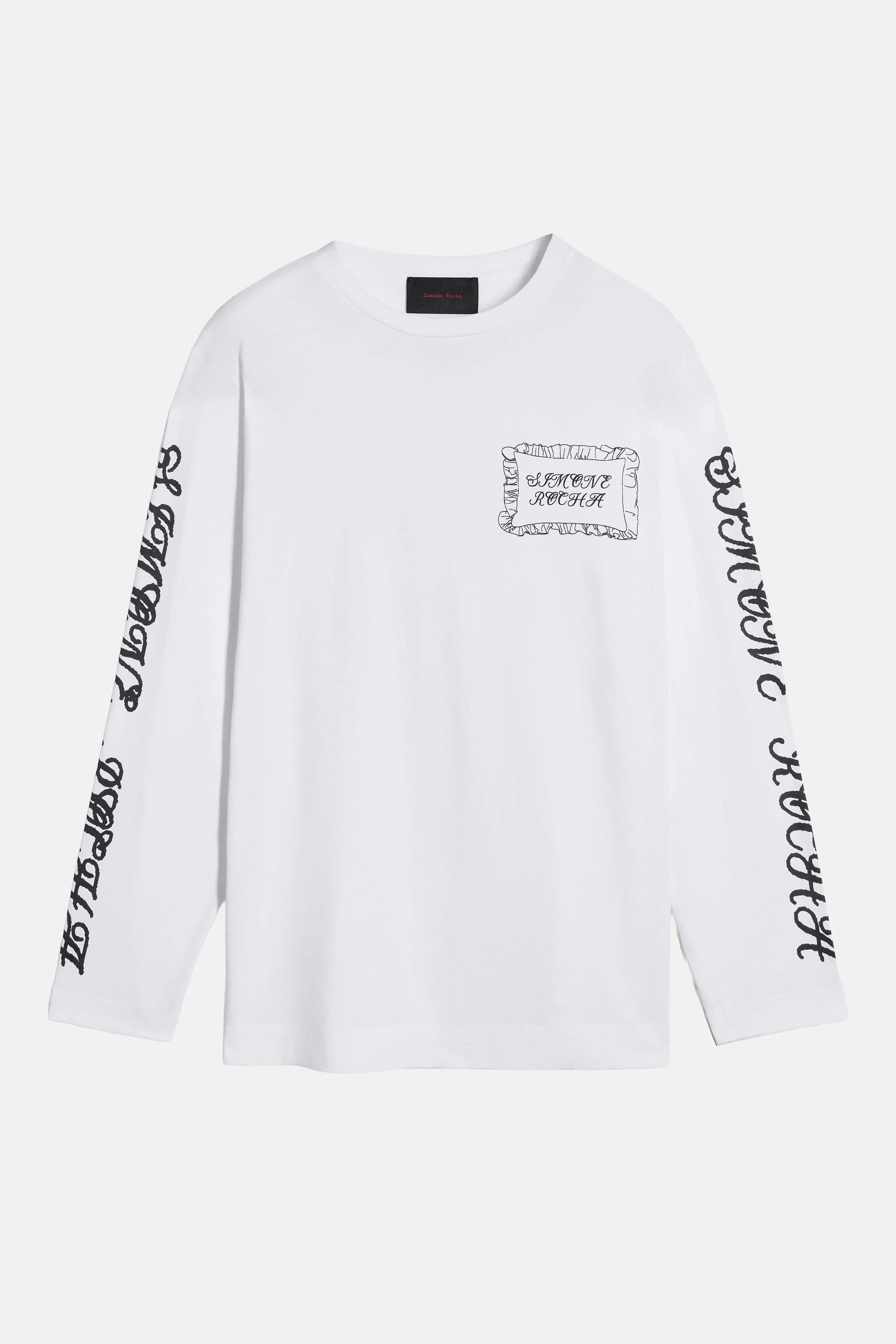 Long-sleeve T-shirt with "Pillowcase" print. Embroidered details that add depth and texture to the design. Classic fit. Made from soft jersey. White with black details Details and Care Color: Bianco Composition: 100% CO Made in: Portogallo Sku: 5194P63ABCW0569WHITEBLACK