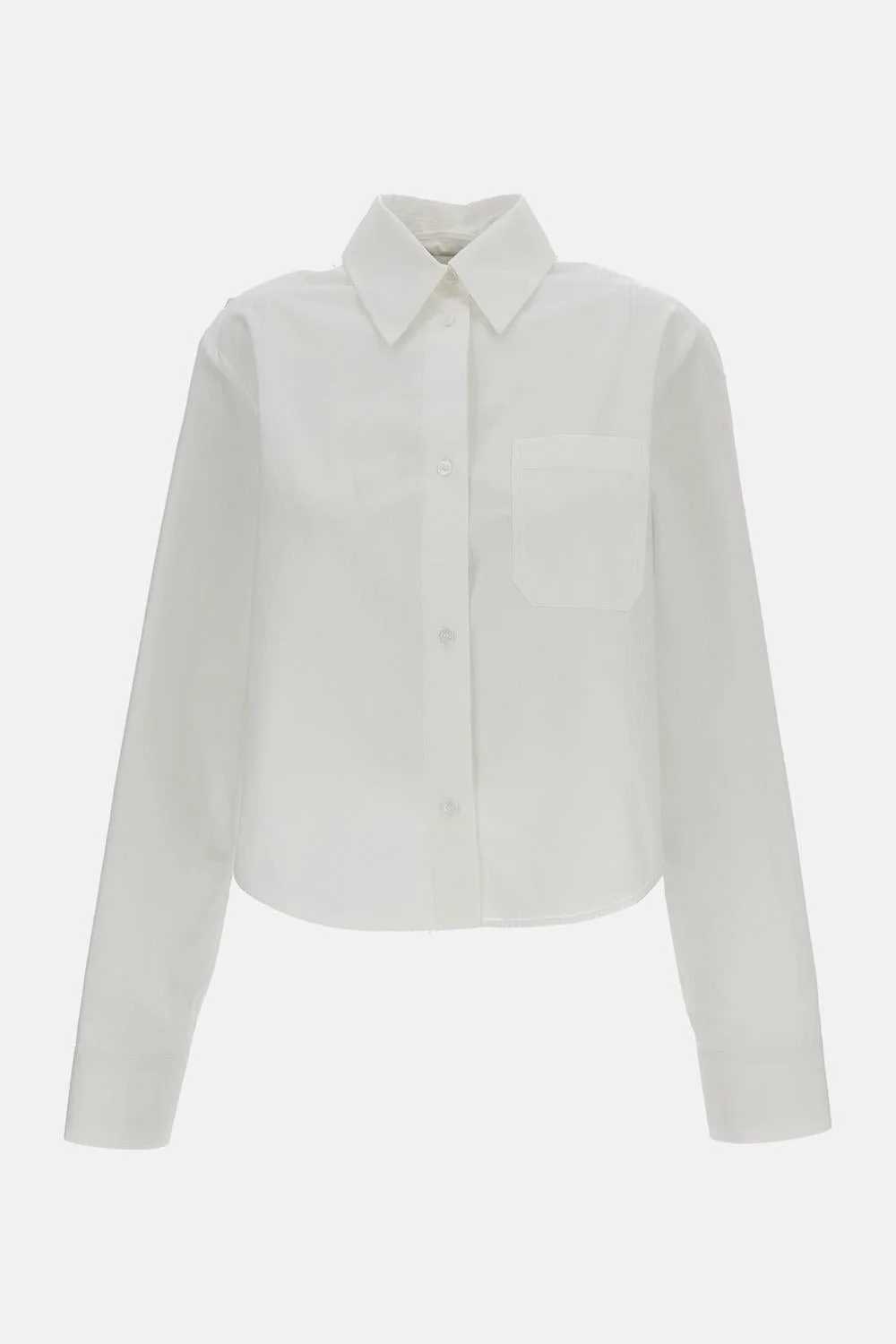 Long shirt in cotton blend Comfortable fit Pointed collar Full central button fastening Patch pocket on the chest Cuffs with buttons Wide side slits Pleated panel on the back Color: white Details and Care Color: Bianco Composition: 77% CO 23% PL Made in: Portogallo Sku: 2612111041600001