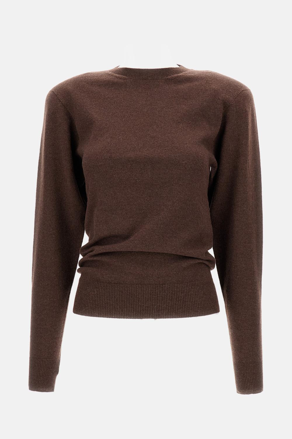Made of 75% cashmere and 25% wool. Shoulders with extra volume for a modern effect. Classic round neckline. Ribbed hem and cuffs. Made in Italy. Brown color. Details and Care Color: Marrone Composition: 75% WS 25% WO Made in: Italia Sku: 6K10623S25962012