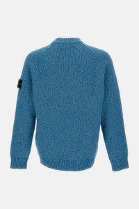 Material: wool mouline and nylon blend Fit: comfortable / loose fit Sleeves: raglan Collar: crew neck Edges: ribbed (collar, cuffs, hem) Color: melange BLUE Logo: removable Stone Island badge on the left sleeve Details and Care Color: Blu Composition: 48% WO 43% PA 9% VI Made in: Croazia Sku: 5100050S00N1V0M57
