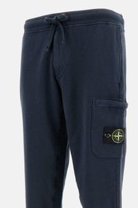 Made from soft cotton fleece. Multi-pocket design: vertical side pockets, back pocket with snap button, and cargo pocket with zip. Overlock stitching and ribbed cuffs at the hem. Iconic removable Stone Island Compass badge on the leg. Elasticated waistband with adjustable drawstring and zip fly. Slim fit cut Color: blue. Details and Care Color: Blu Composition: 100% CO Made in: Tunisia Sku: 6200010S0051V0020