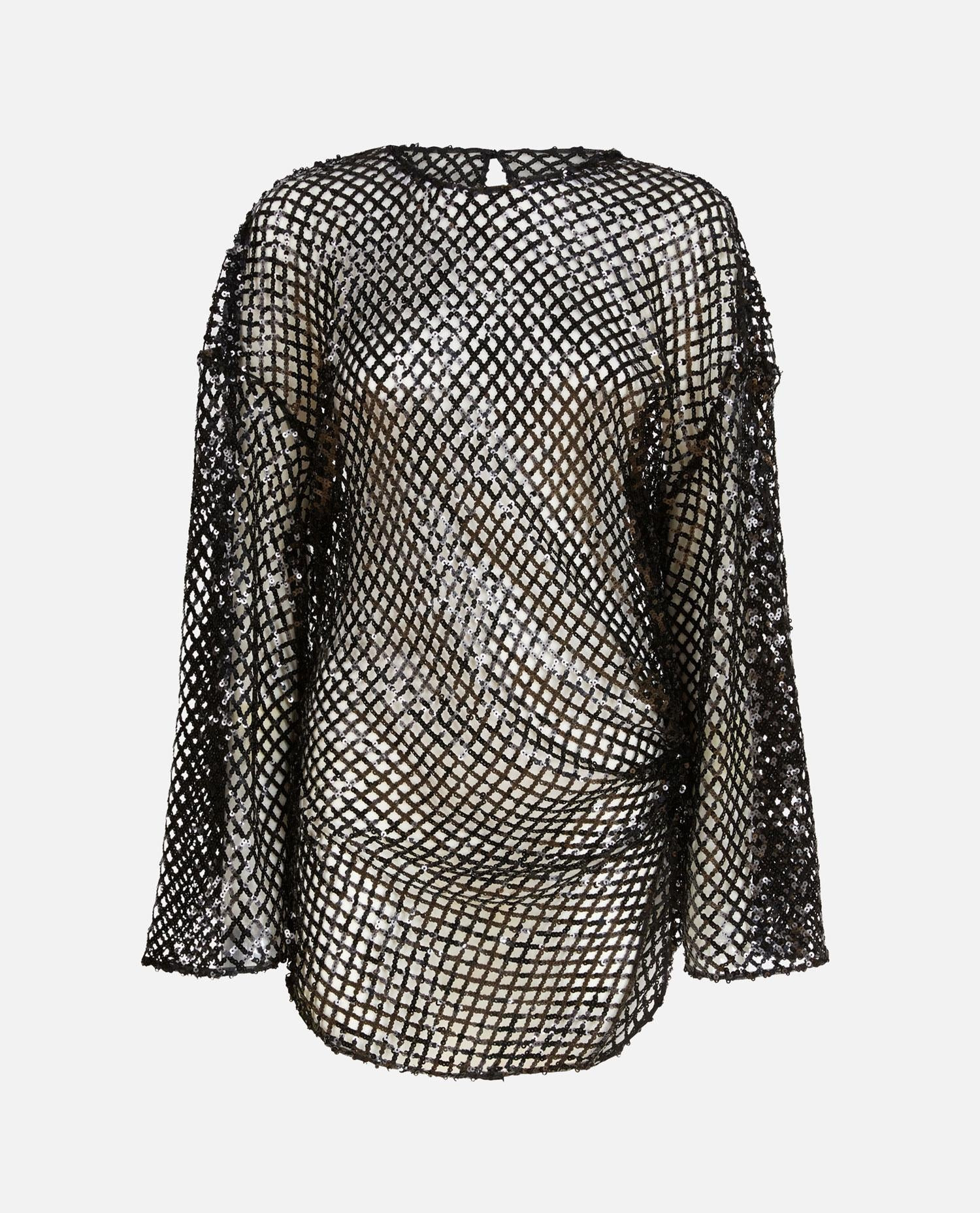 Mini mesh dress with sequins. Long sleeves. Color: black Details and Care Color: Black Composition: 100% PL Made in: Italia Sku: 251WCA00453PLL009AA100