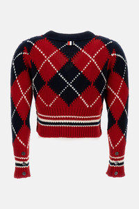 Red Argyle Intarsia Merino Wool Shrunken Cardigan