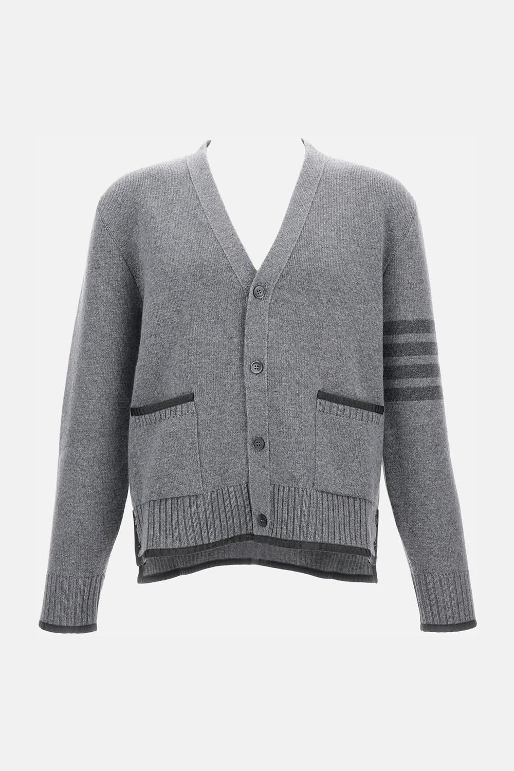 Wool cardigan with V-neck and classic button closure. 2 patch pockets. Made in Italy, gray color Care and details Color: Grey Composition: 100% WIRGIN WOOL Made in: Italia Code: MKC608AY1029055
