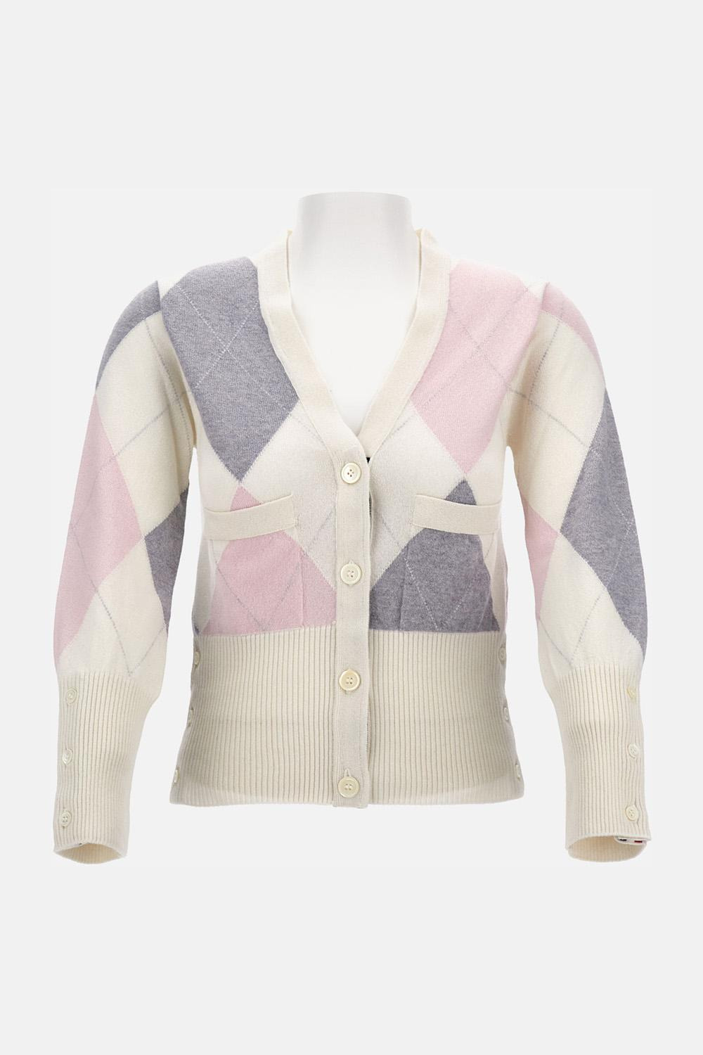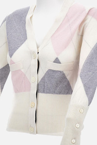 ARGYLE INTARSIA CASHMERE V NECK CARDIGAN