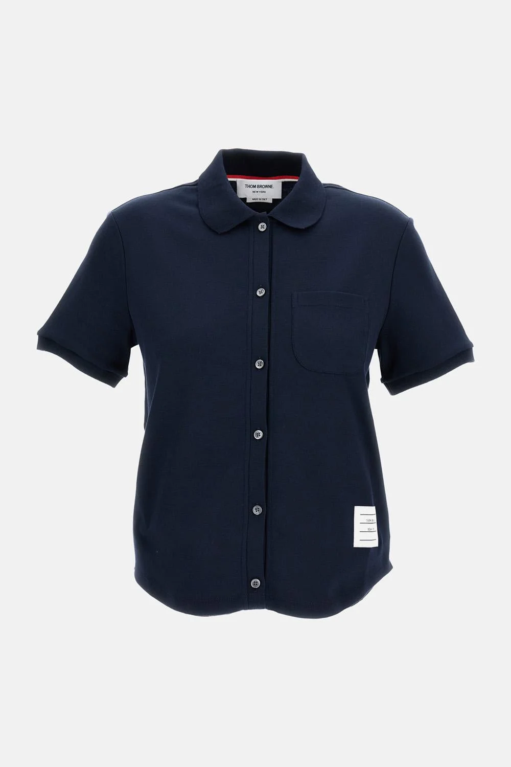Short-sleeve polo with full front button closure Ribbed collar and sleeves Chest patch pocket Signature striped grosgrain back tab Color: blue Made in Italy Details and Care Color: Blu Composition: 100% CO Made in: Italia Sku: FJP125AJ0055415