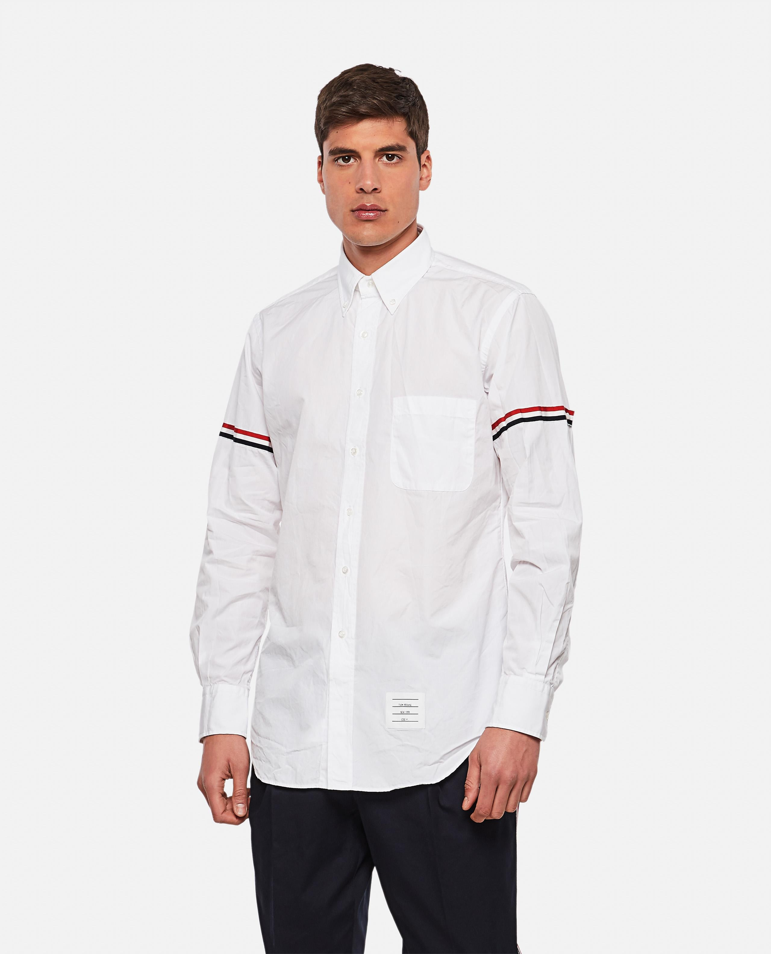 Button closure. Buttons on the cuffs. Striped band on the arms. Logo detail. Classic fit. Color: white. Details and Care Color: White Composition: 100% CO Made in: Italia Sku: MWL150E03113100
