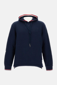 Knitted sweatshirt with hood and adjustable drawstring. Ribbed cuffs. Short side slits. Contrast stripes on hood and cuffs. Blue color. Made in Italy. Details and Care Color: Blu Composition: 92% CO 8% PA Made in: Italia Sku: MJT544AJ0233415