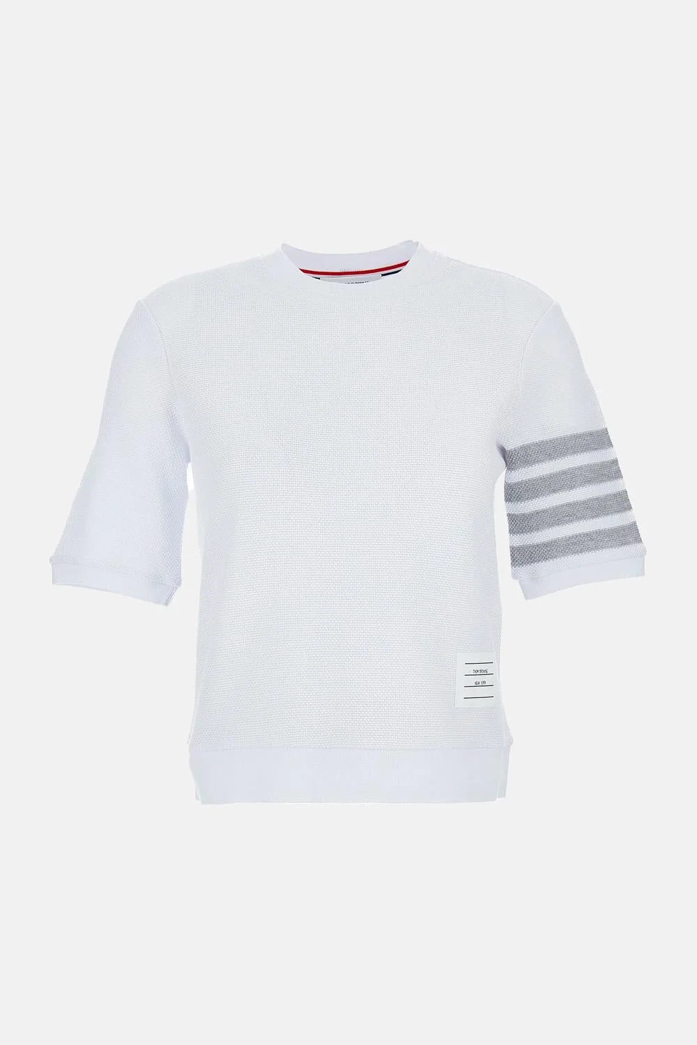 Cotton T-shirt with ribbed piquet cuffs Iconic 4 bars on the sleeve Contrast details and label on the hem with logo. Made in Italy Color: white/grey Details and Care Color: Bianco Composition: 100% CO Made in: Italia Sku: FJS222AJ0248100