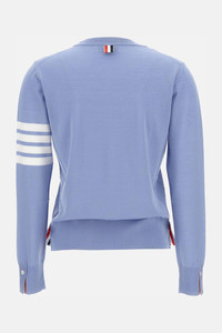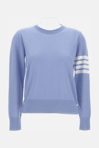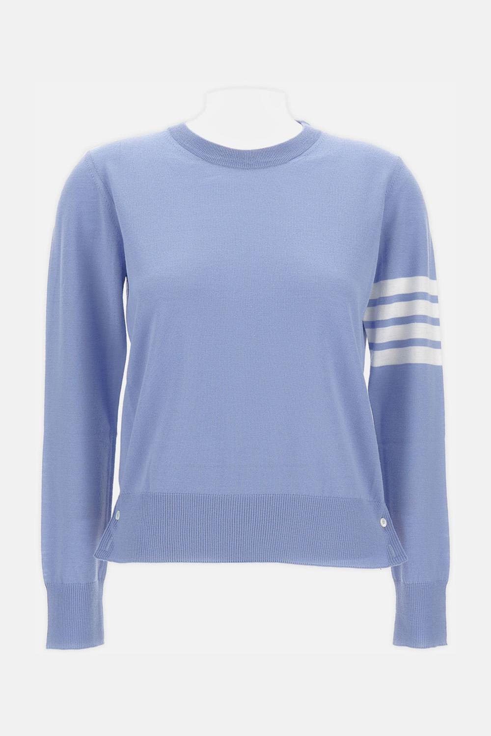 Round neckline, four-bar striped detail on the left sleeve, side slits with button and cuffs with striped grosgrain trim, grosgrain ring tab on the back of the collar. Color: Light blue Details and Care Color: Azzurro Composition: 100% WV Made in: Italia Sku: FKA280AY1014482