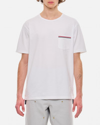 Whitemedium Weight Jersey Tipped Pocket Crew Neck Tee