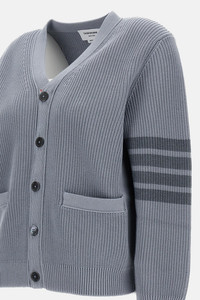 Cotton cardigan with a ribbed pattern. Front button closure. Two front pockets. 4 iconic contrasting stripes on the sleeve. The long ribbed cuffs with buttons are lined with the brand’s iconic tricolor grosgrain. Color: grey. Made in Italy. Details and Care Color: Grigio Composition: 100% CO Made in: Italia Sku: MKC635AY3065055