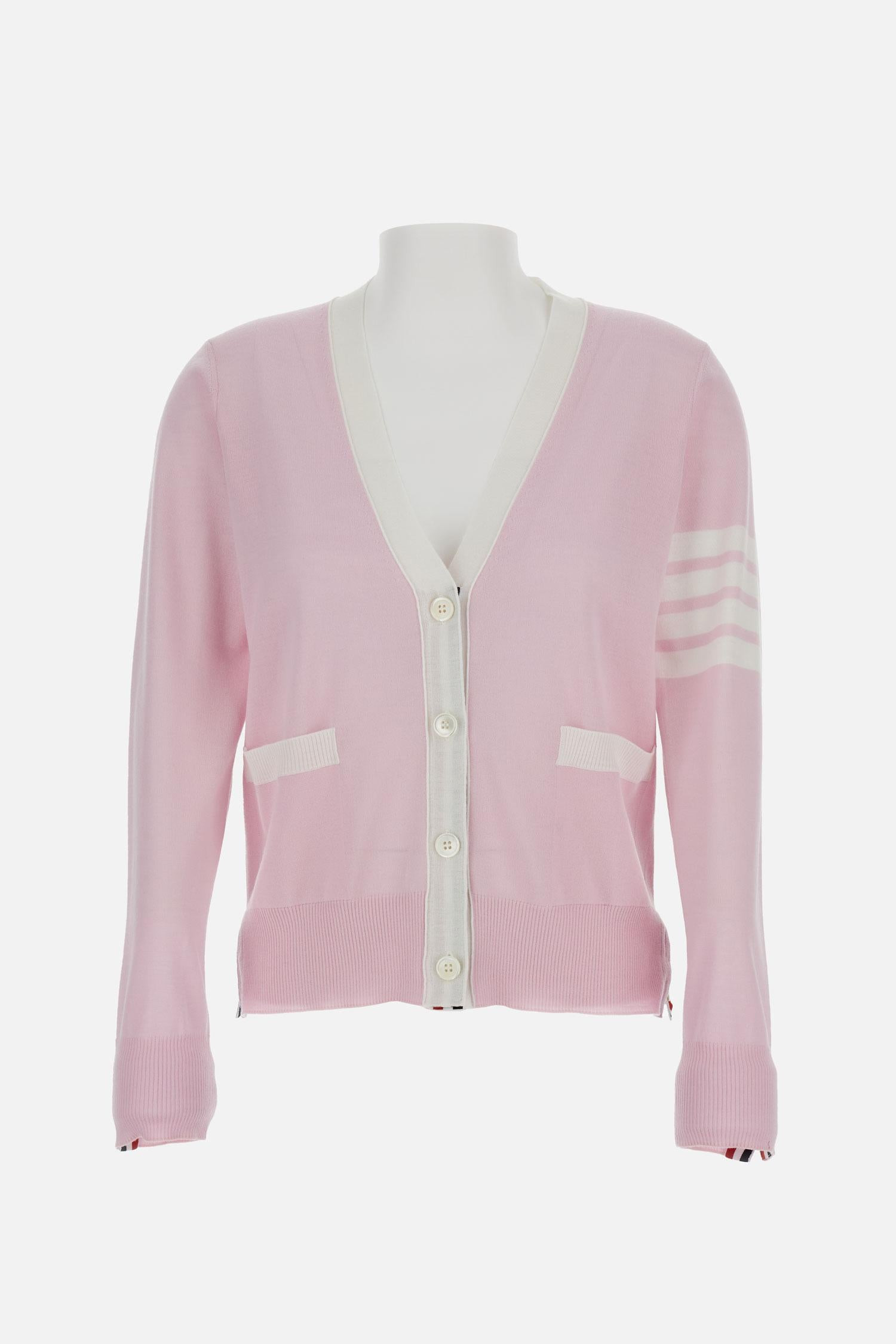 FINE MERINO WOOL 4-BAR RELAXED FIT V NECK CARDIGAN