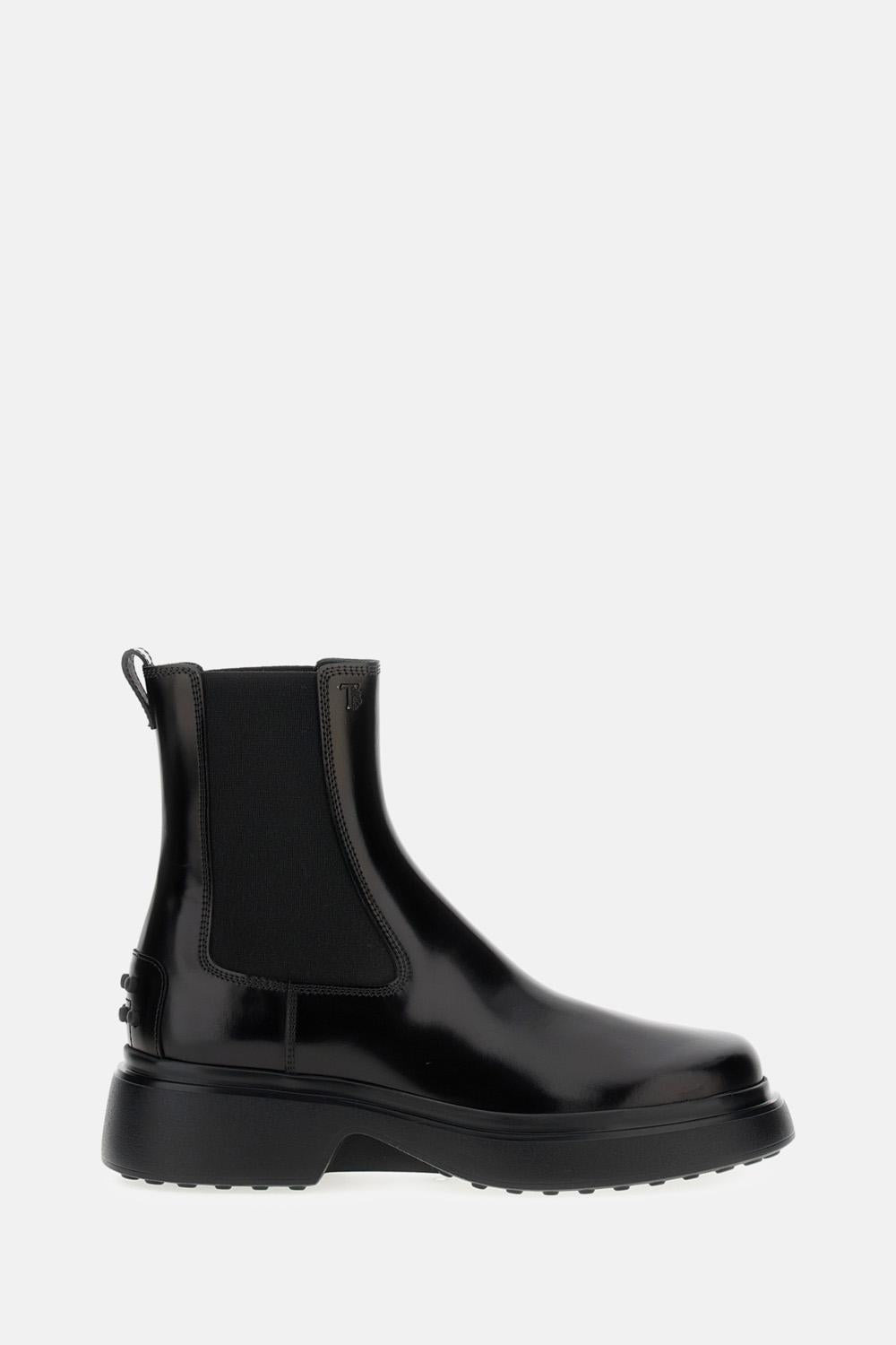 Ankle boots with calf leather upper, embossed Tod's monogram, elastic side inserts, leather insole, rubber sole with raised studs. Color: Black Details and Care Color: Nero Composition: 100% LEATHER Made in: Italia Sku: XXW74L0JK20AKTB999