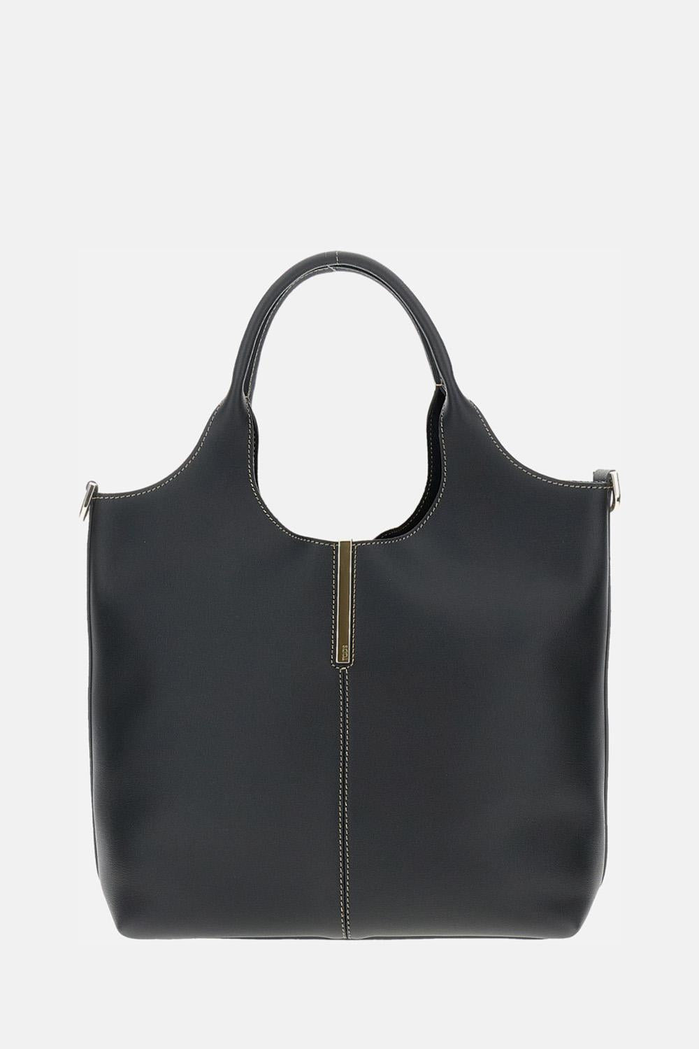 Calfskin leather Removable shoulder strap Two top handles Hook closure Made in Italy Engraved logo on front metal detail Color: Black Care and details Color: Black Composition: 100% CALFSKIN LEATHER Made in: Italia Code: XBWEBRF0200UBLB999