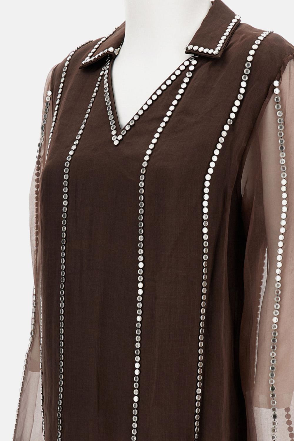 Shirt with V-neckline, 100% organza silk, with metal stud-style details, brown color. Details and Care Color: Marrone Composition: 100% SE Made in: India Sku: WA25TO01SE01801
