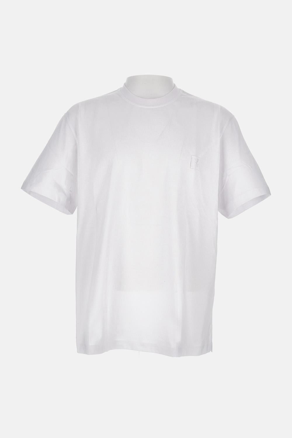 Short-sleeve crew neck T-shirt in cotton. Print on the back with metallic application, white color Details and Care Color: Bianco Composition: 100% CO Made in: Corea del Sud Sku: W253TS07701W