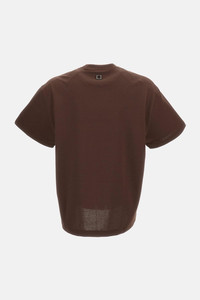 Premium T-shirt in heavy cotton jersey. Contrasting Wooyoungmi logo printed on the back. Square metal detail with logo at the nape. Ribbed crew neck and oversized cut. Dropped shoulders Color: Brown Details and Care Color: Marrone Composition: 100% CO Made in: Corea del Sud Sku: W261TS02703D
