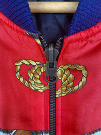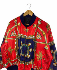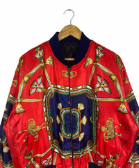Vintage - VINTAGE BAROQUE CHAIN OVER PRINT DESIGN SATIN BOMBER JACKET