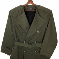 SIZE : 46 RECOMMEND SIZE : M-L MATERIAL : 100% Cotton COLOR : Olive Green CONDITION : Very Good Shoulder : 47cm Front Chest : 59cm Sleeve : 65cm Length : 122cm SHIPPING Transit time can take 3-7 business days to reach destination. Please note that the item is in Malaysia and may take longer time delivery. REFUNDS Refunds Are Given Only If Items Are Not As Described. No Refunds For Wrong Sizes So Please Check And Compare Measurements To Something You Own Before Bidding. Most Of My Items Are Vintage/Used Items, So Please Check Pictures And Ask Questions. Thank You.