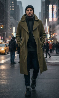 Dark Green Long Coat Large Notch Lapel Collar