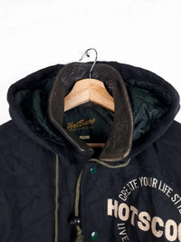 KINDLY PLEASE READ ALL THE DESCRIPTION BEFORE PURCHASING!!!.. DON'T HESITATE TO ASK ANY QUESTION :- Kindly see the actual measurements :- (All measurements were taken lying flat) Actual size Manual Measurement (approximately) : UNDERARM TO UNDERARM :- 24.5 inches LENGTH :- 25.5 inches SHOULDER TO SHOULDER :- 21.5 inches SLEEVE LENGTH :- 22.5 inches NECK SEAM TO CUFF : 30.5 inches Hem :- 15.5 inches TAGGED SIZE :- fits like M MATERIALS : Polyester/Wool/Leather MADE IN :- Japan Condition: good overall condition for vintage item Kindly see all pictures Thank you so much for your visit Shipping :- DHL express shipping 3-7 working day Etc: Don't Worry About Customs Tax or Fees. I usually Declare all Items as 'Gift' & Declare Value of Item Lower than Original Price. All Items are Sold "AS IS" so Please be Sure to Read The Entire Description and Look at All The Pictures. Any Question and More Details Please Don't Hesitate to Contact Me. ATTENTION : Please pay close attention to measurements provided. Do not rely on tag size as pre-worn items may have been altered, stretched or shrunk & vintage sizes do not directly translate the modern sizes.The best way to ensure a correct fit is to compare our measurements with the measurements of a similar item that you know fits you well.Please enlarge the photos for clearer image. NO REFUND/NO RETURN Code : A6